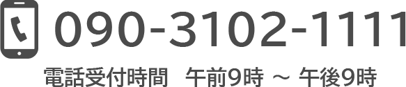 受付時間は朝9時から夜の9時まで、それ以外の電話は折り返しさせていただくことになりますので、よろしくお願いいたします。
